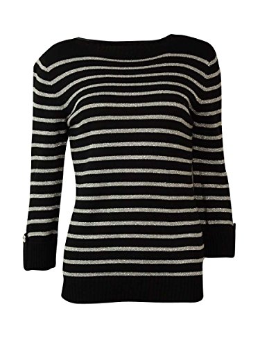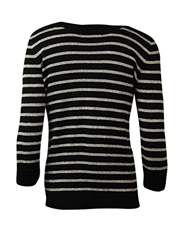 (Karen Scott)/Women/Sweaters/DIRECT FROM USA/Karen Scott Women's 3/4 Sleeve Pullover Metallic s triped Sweater Deep Black