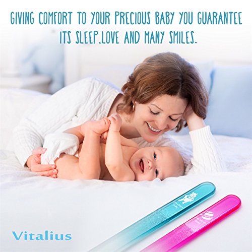 SAFE AND EASY; Glass baby nail files are safe and easy to use; Will not pinch, cut or abrade baby’s tender skin; Files have smooth rounded ends with no sharp edges; More effective than clippers, scissors, or cutters; Comes in convenient plastic sleeve for on the go or travel