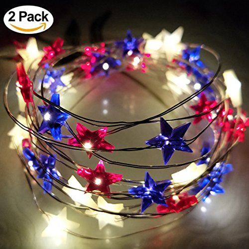 ADAINA 2 Pack Battery Operated Star Shaped Indoor String Lights 7ft 20 Leds Silver Wire Fairy Lights 3AA Powered For Christmas Wedding Garland Dinner Party Home Patriotic Decoration (2M 20 Leds)