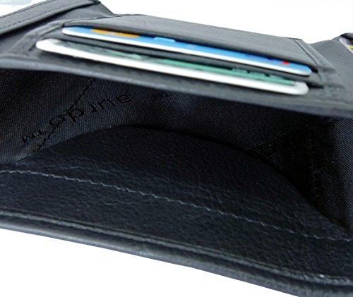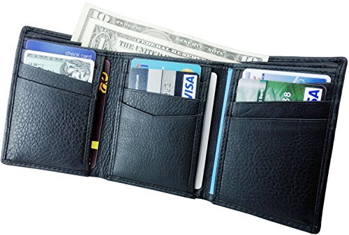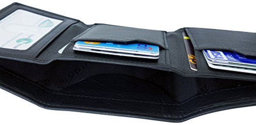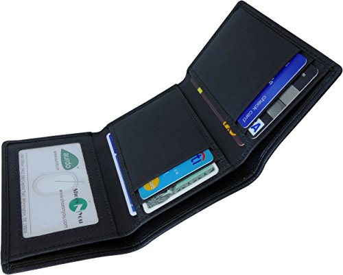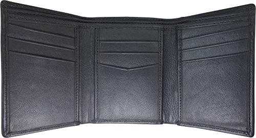Binding : Apparel Product Description Trifold Wallet is made from 100% Genuine leather, it is finished in a attractive black color. It is designed to hold 9-15 Credit Cards comfortably with full length currency pockets, an easy accessible id window and a hidden pocket for Coin, Key Cards and is targeted towards men to be used during daytrips. Furthermore, it is recommended to be kept away from extreme heat, fire and corrosive liquids to avoid any form of damage.