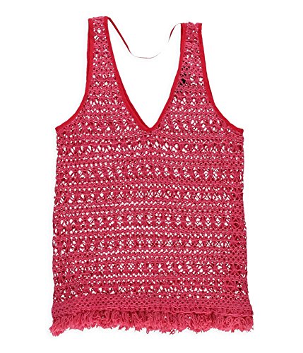 Item Description: Crochet patterned tank top V neckline in front and back Wear over a cami Fringed hemline