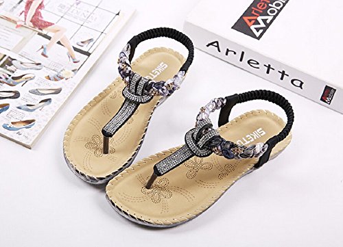 Binding : Apparel Product Description Details: 1.Flat Sandals,Luxury shining diamond, fine cut professional chefs production, set in the upper, decorative shoes, bring beauty. 2.Fine stitching, double reinforced shoes, to ensure no dropped calls, no off-line, to add a second layer of protective shoes. 3.Using the finest materials in the interior, comfortable and breathable not stuffy feet, keep your feet dry. 4.Thick soles designed slip resistant sole function is twice as thin, you can feel every step of lightweight shoes. 5.Portable Pouch:Prevent moisture,prevent dust,travel shoes storage.