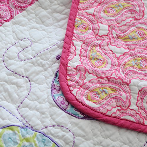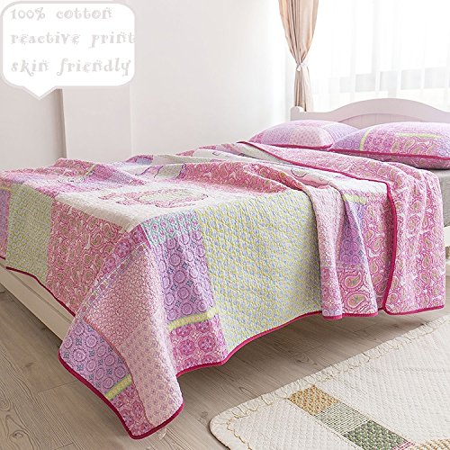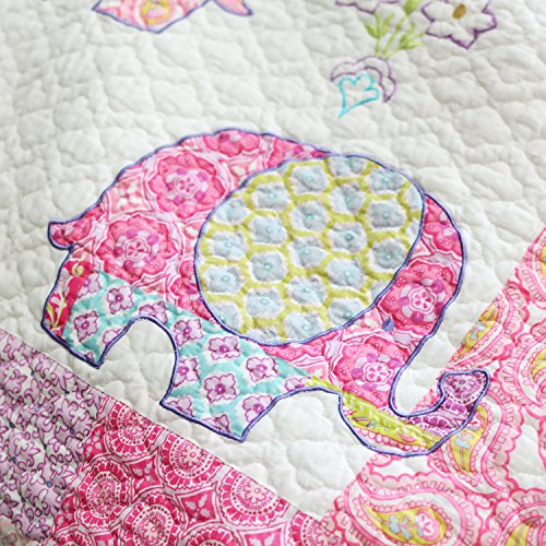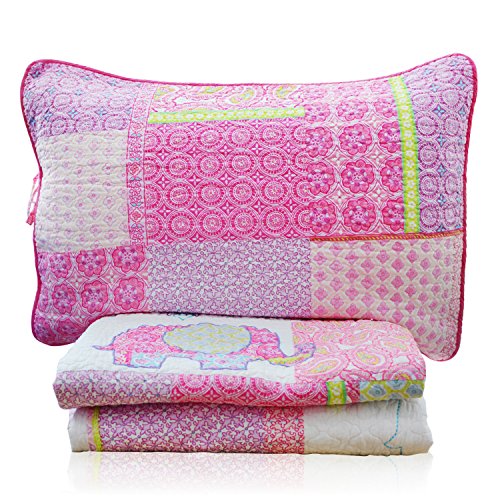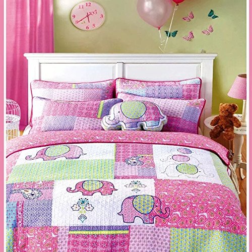 Brandream 3-Piece Pink Elephant Quilt Set Girls Kids Bedding Set Queen Size