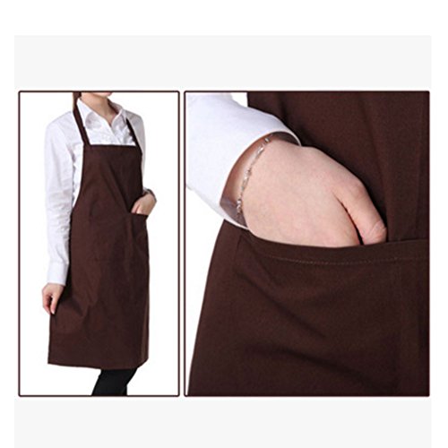 2 Pack Adjustable Bib Apron Waterdrop Resistant with 2 Pockets Cooking Kitchen Aprons for Women Men Chef, Coffee Shop/Kitchen/Bar/Bakery/Hotel Durable Apron (Dark brown)