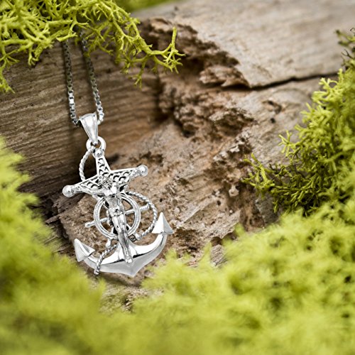 This simple sterling silver crucified Jesus on an anchor necklace is both classy and playful. Perfect for any collection. Comes with a 16"-18" adjustable box chain. Gift box included. From Honolulu Jewelry Company, Honolulu, Hawaii.Feature