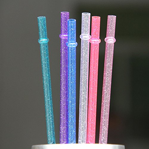 Dakoufish 12 Piece 11 Inch Long Reusable Clear Acrylic Drinking Straw With Glitter Sparkle Various Colors Plus One Cleaning Brush (ADS013-11mix 6color)