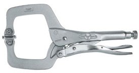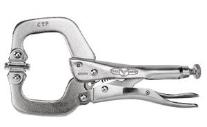 Versatile wide-opening jaws clamp a variety of shapes. Guarded trigger provides quick release while helping prevent accidental release. Locking clamp is constructed of high-grade heat-treated alloy steel for maximum toughness and durability. Adjust pressure and work fit with turn screw that stays adjusted for repetitive use. Swivel pads hold tapered work, cumbersome fabricating jobs, and delicate projects without damaging the work surface. IRWIN Tools VISE-GRIP Locking C-Clamp, Original, Swivel Pads (18)Feature
