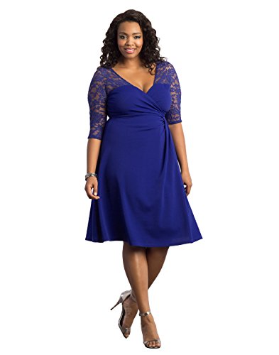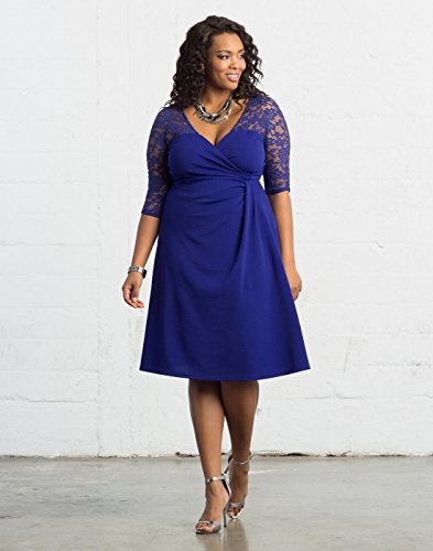 Binding : Apparel Product Description Simply sweet, our Lavish Lace Dress is the perfect combination of style and femininity. Gathering at the natural waist and a surplice neckline gives this dress a unique faux wrap look. Also designed with a lovely lace illusion neckline and A-line silhouette, this cocktail dress was made to flatter in more ways than one. Available exclusively in women's plus sizes. Self: 95% Polyester, 5% Spandex; Lace: 90% Polyester, 10% Spandex; Lining: 100% Polyester. Dry Clean Only. Made with love in the U.S.A. 0
