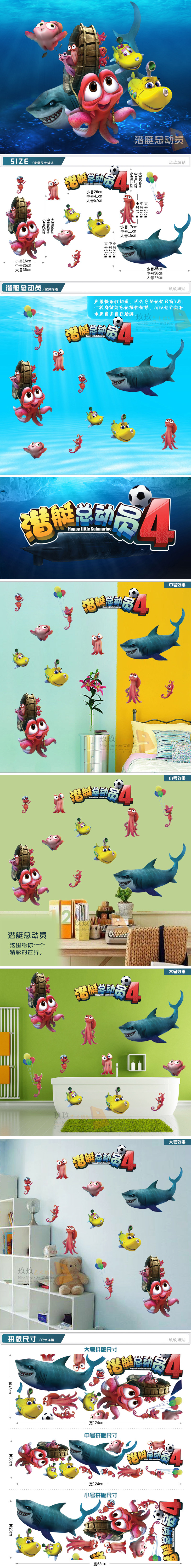 海底海洋鱼幼儿园游泳馆池卡通防水贴纸动漫潜艇总动员