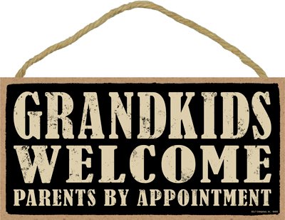 (SJT94400) Grandkids welcome. Parents by appointment 5" x 10" primitive wood plaque, sign