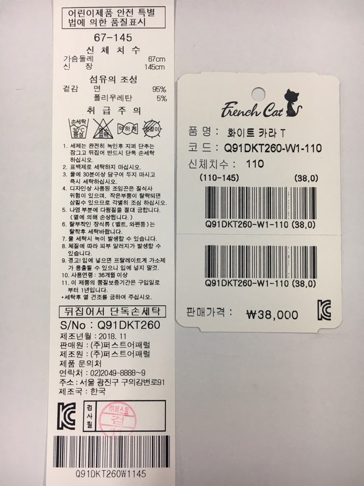제조자 : 퍼스트어패럴