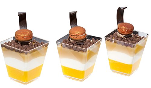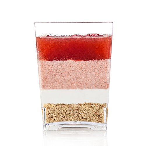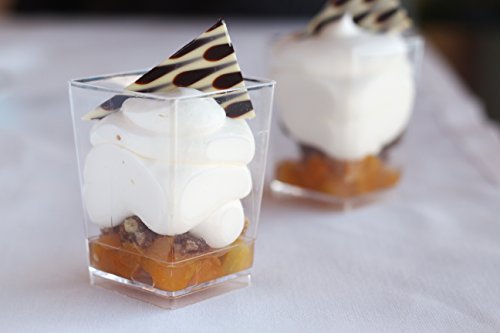 Premium Square Dessert Cup ( 4 oz ) made from Durable Crystal Clear Plastic by Oasis Creations ( 50 Count ) Ideal for Desserts,Appetizers,Entrees,Puddings,Mousse and More!