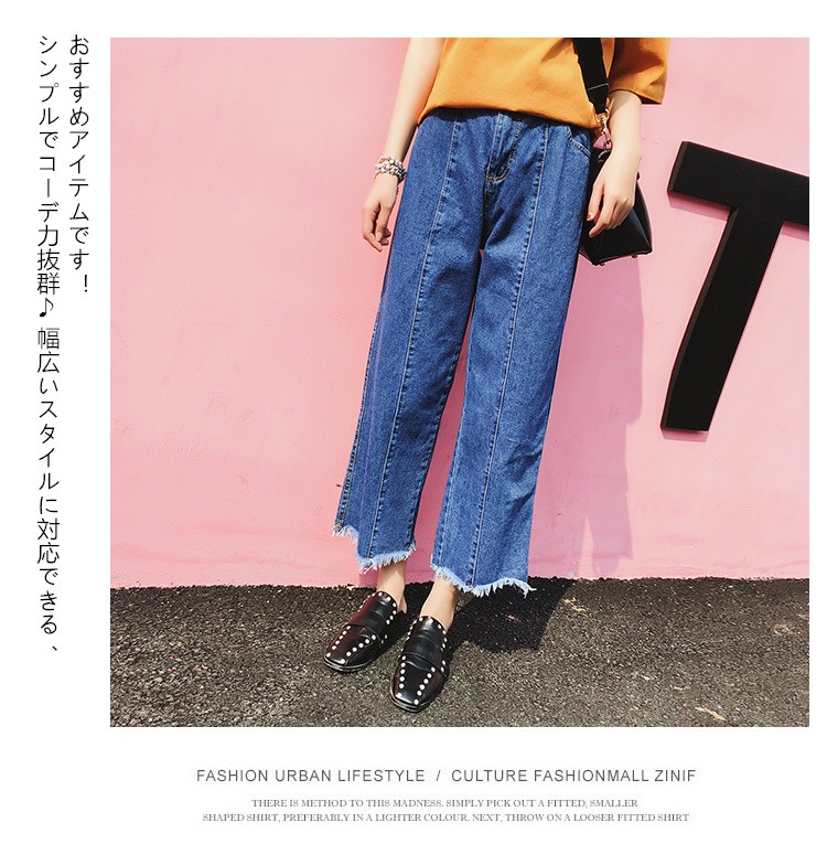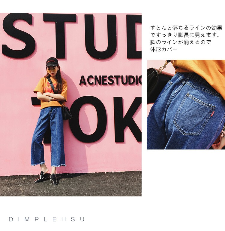 ハンサムなイメージのあるワイドパンツもカットオフデニムなら大人カジュアルな印象で楽しめます。旬のハイウエストデザインで即脚長効果オールシーズン活躍してくれるデニムはシルエット違いで欲しいアイテムです 製品番号:2031単位: CM (平置き採寸)素材: デニムスタイル: ワイドパンツサイズ: S / M / L色:ネイビー彈性: 伸縮性なし----------------------★サイズ: S 総丈:89cm ウエスト:64-72cm ヒップ:102cm★サイズ: M 総丈:90cm ウエスト:66-74cm ヒップ:104cm ★サイズ: L 総丈:91cm ウエスト:68-76cm ヒップ:106cm サイズ表の実寸法は商品によって2cm程度の誤差がある場合がございます。