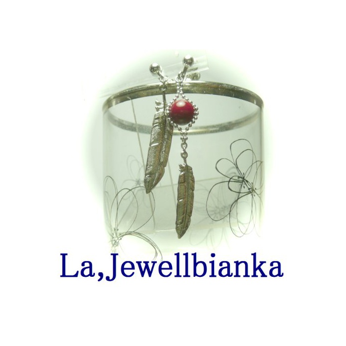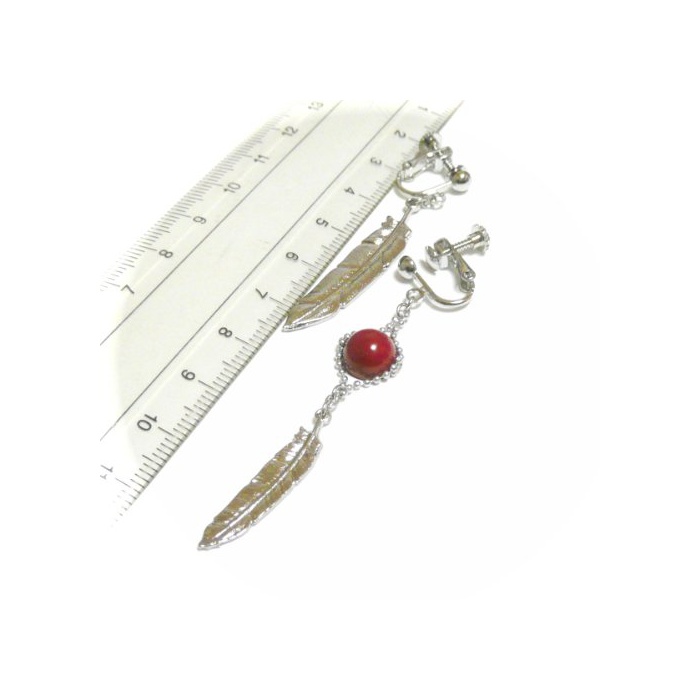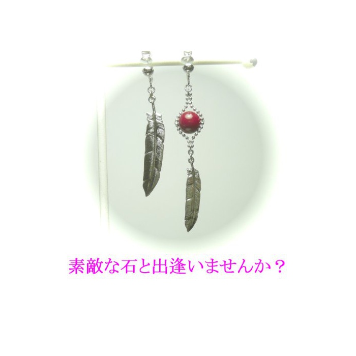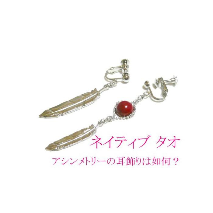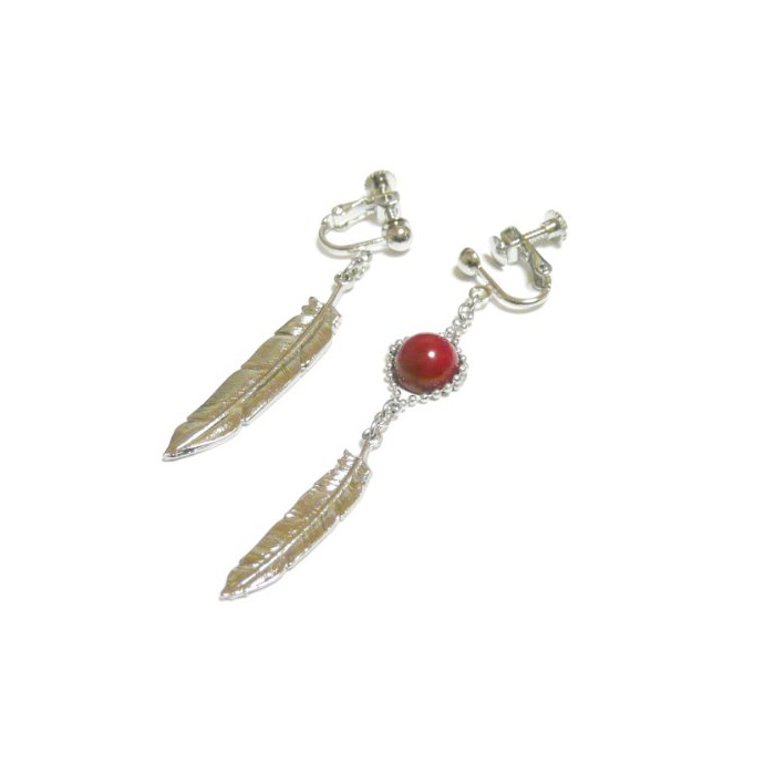 원본상품명: 【 アシンメトリ 】 フェザ チャム と 赤珊瑚 ( 8mm 丸珠 ) イヤリング