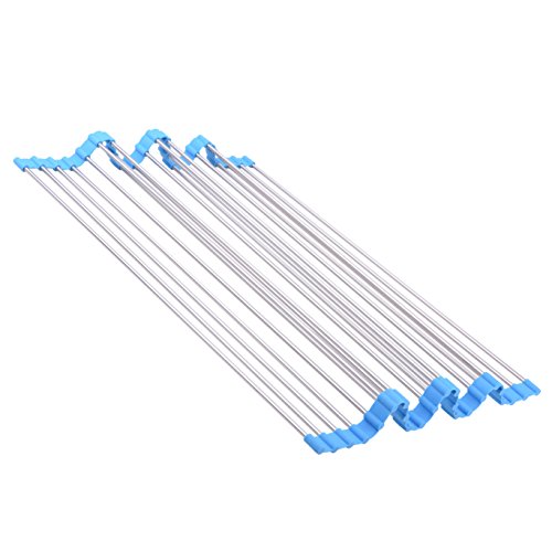 Kingnice Over the Sink Multipurpose Stainless Steel Roll-Up Dish Pot Drying Rack, 20.3"(L) x 18.5"(W), Blue
