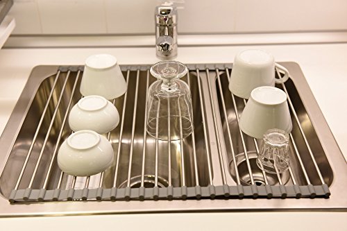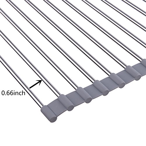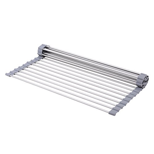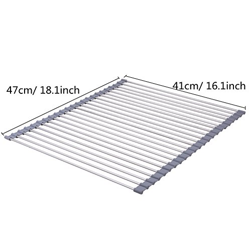 Kingnice Over the Sink Multipurpose Stainless Stee Roll-Up Dish Pot Drying Rack, 16.1"(L) x 18.5"(W), Grey