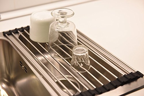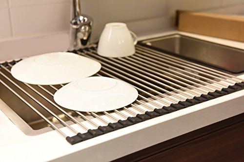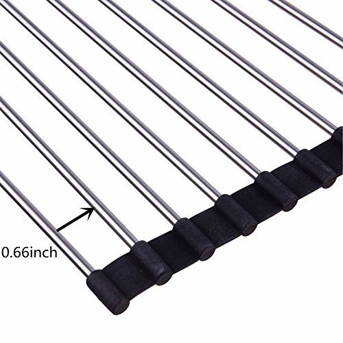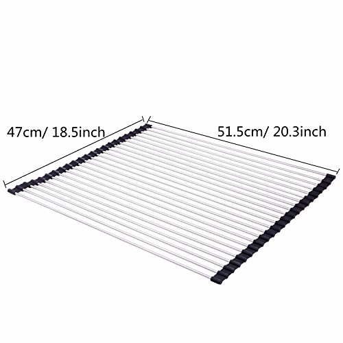 Kingnice Over the Sink Multipurpose Stainless Steel Roll-Up Dish Pot Drying Rack, 20.3"(L) x 18.5"(W), Black