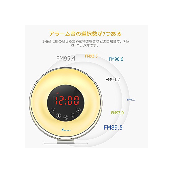 【7종 선택 벨】15단계의 음량 조절로 옵니다.자명종의 벨은 7종이 있고, 수풀,새,동소리 등에서 자신의 주문 따라서 선택할 수 있습니다.벨7이 FM라디오에,알람 울리면,라디오를 들을 수 있습니다.