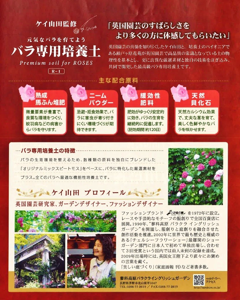 Based on original peat moss + aged horse-chest manure compost, it is culture soil specialized for roses