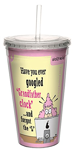 Tree-Free Greetings 16-Ounce Cool Cup with Reusable Straw, Aunty Acid Grandfather Clock (CC98590)