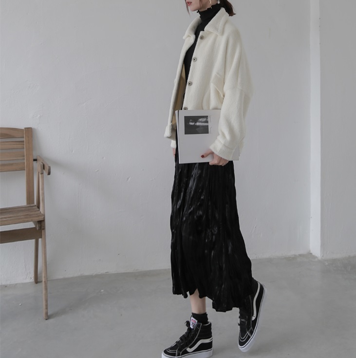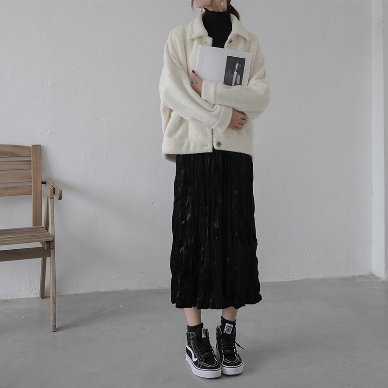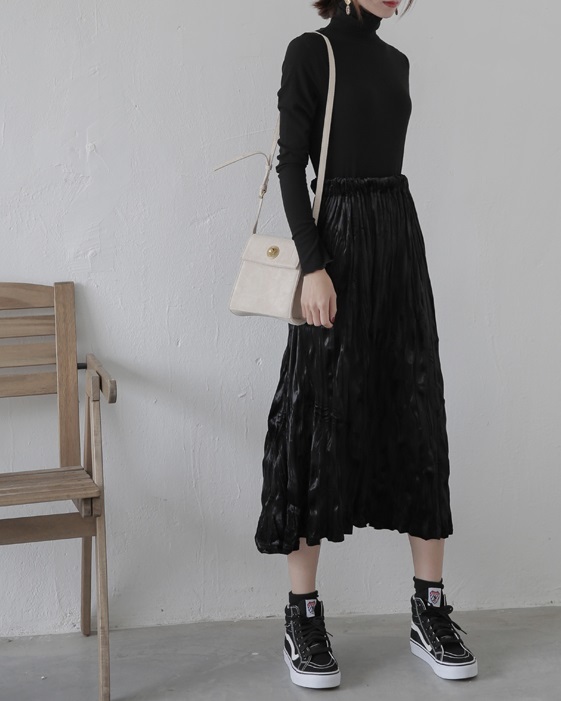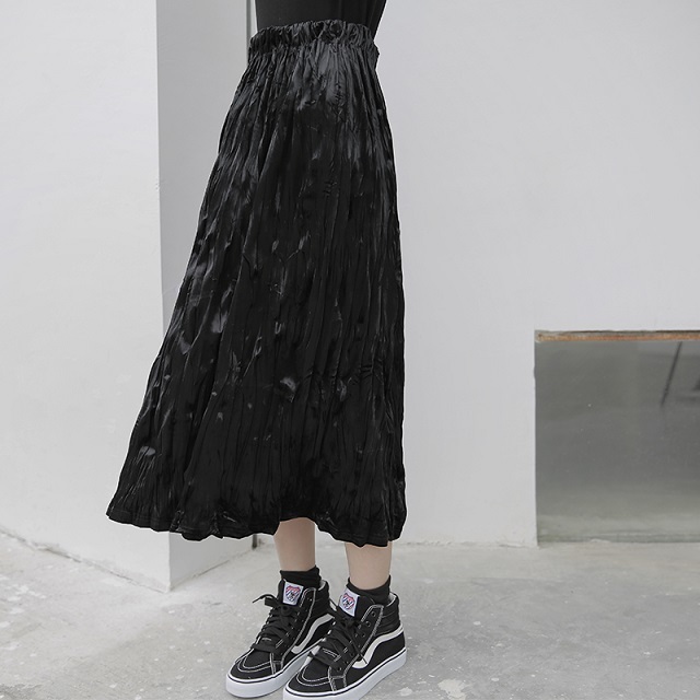 こなれ感漂うクリンクル加工を施したサテンプリーツスカートです◎