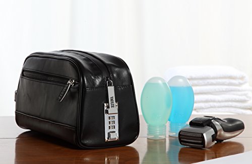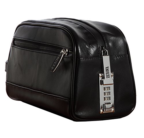 Vaultz Locking Leather Travel Kit, 5.75 x 5 x 10 Inches, Black (VZ03510)