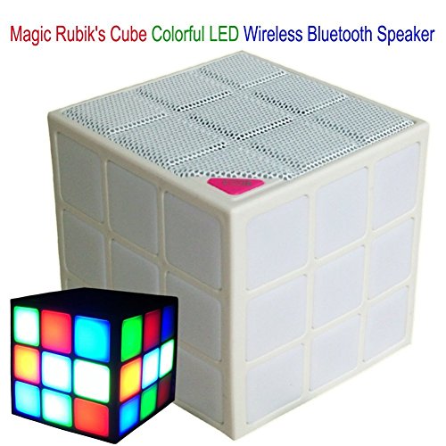 [Upgrade Version] New Wayzon Magic Rubik's Cube Portable LED RGB Light Deep Bass Bluetooth 4.0 Wireless Speakers with Build in Microphone Hands-free Function TF Card Mode(White)