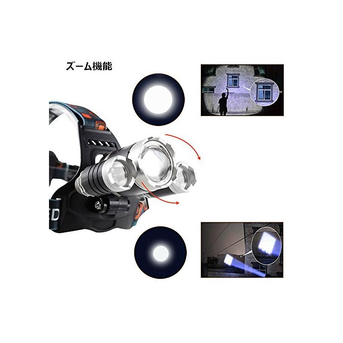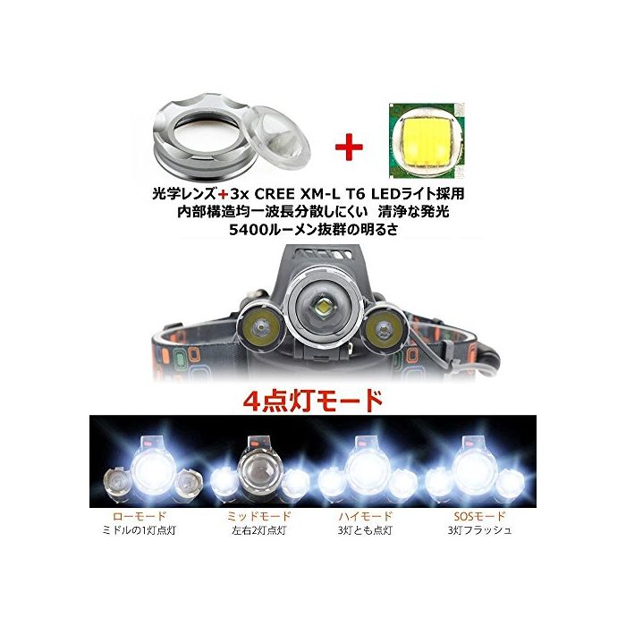 원본상품명: ヘッドランプ 超?力 5400ル?メン LED ヘッドライト 充電式 防水 耐久 4つ点?モ?ド ズ?ム機能 自?車 登山 夜間作業 アウトドアに適用 新18650電池2本付 Blu7ive