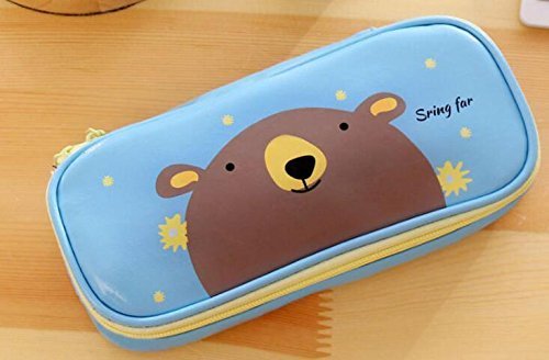 LORJE new Large Storage Pencil Case Pencil Holder Cosmetic Makeup Pouch Zipper Bag Blue Bear