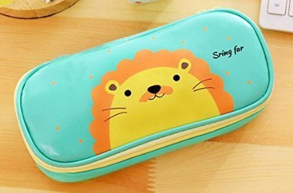 LORJE NEW Large Storage Pencil Case Pencil Holder Cosmetic Makeup Pouch Zipper Bag Green Lion
