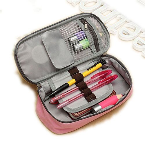 LORJE Big Capacity Multifunction Canvas Pencil Case Bag Storage Organizer Pencil Case- ( Pink)