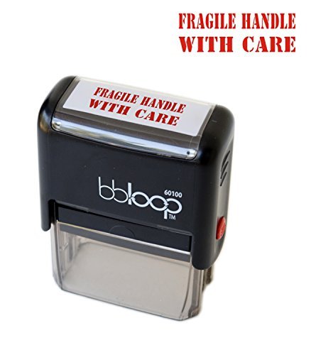 BBloop Stamp "FRAGILE HANDLE WITH CARE" Self-Inking, Rectangular. Laser Engraved. RED