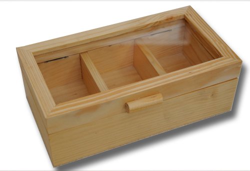 -. Title : Teebeutelbox Teebox aus Holz mit Fenster, 3 Fächer L. 21,5 x B. 12 x H. 7,5 cm