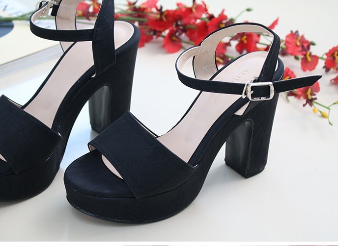商品名:サンダル レディース 太ヒール チャンキーヒール アンクルストラップ プラットフォーム 2018 夏 ファッション 靴 婦人靴