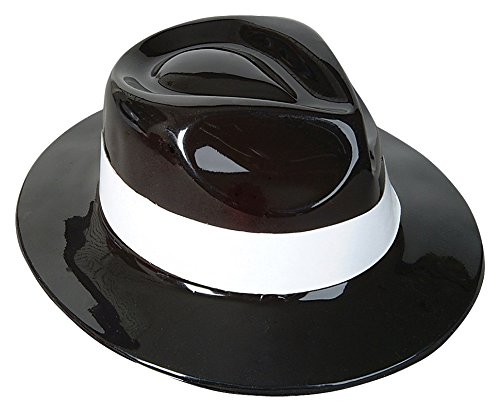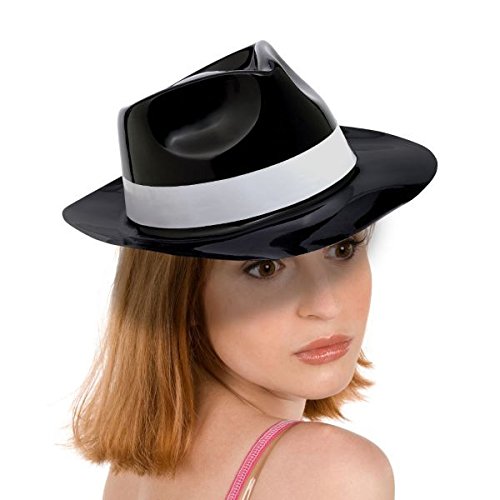 -. Title : Rock-n-Roll Theme Party Fedora Hat with White Band Accessory, Plastic, 11" x 10"
