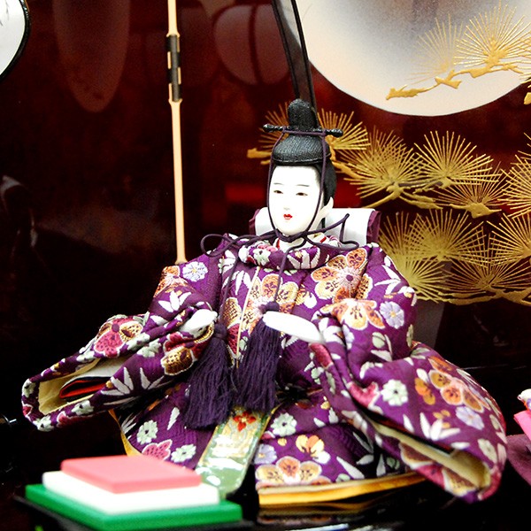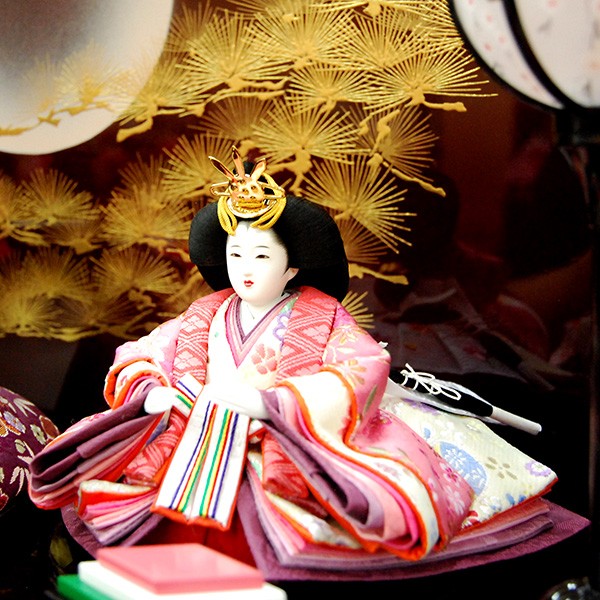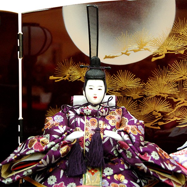 ・台座・屏風等には落ち着いた色目の雛人形セット。