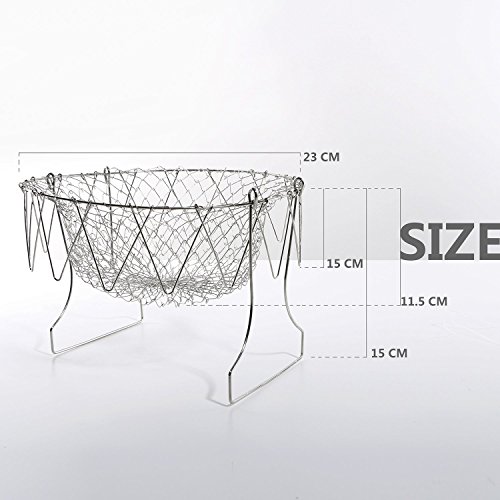 EpochAir Deep Fry French Chef Basket, Foldable Steam Rinse Strain Magic Stainless Steel Strainer Net Basket for Kitchen Cooking