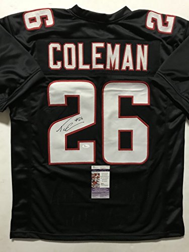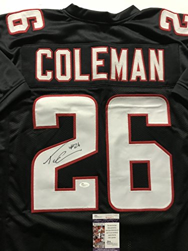 Autographed/Signed Tevin Coleman Atlanta Falcons Black Retro Football Jersey JSA COA