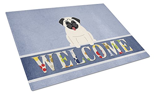 Caroline's Treasures Pug Cream Welcome Glass Cutting Board Large, Multicolor