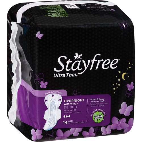 Stayfree Ultra Thin Overnight with Wings Thermo Control 14 count - Pack of 4