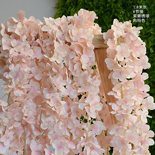 10pcs/lot Artificial Lifelike Silk 180cm Hydrangea Flower Vine Wisteria Rattan Cane Garland Plant Wedding Party Home Garden Decoration (incarnadine)