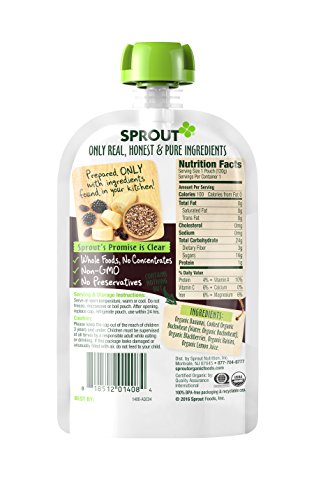 Sprout Organic Toddler Food Pouches, Organic Toddler Food, Banana Buckwheat Blackberry, 4.22 Ounce (Pack of 5)