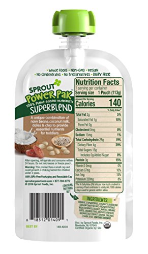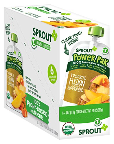 Sprout Power Pak Organic Baby Food Pouches, Organic Toddler Food Puree, Tropical Fusion with Superblend, 4 Ounce, 6 Count