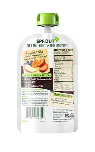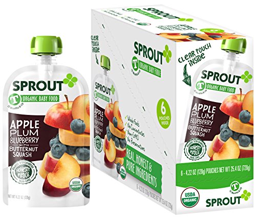 Sprout Organic Baby Food Pouches, Stage 2 Sprout Baby Food, Apple Plum Blueberry with Butternut Squash, 4 Ounce, 10 Count