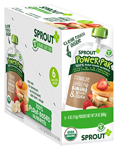 Sprout Power Pak Organic Baby Food Pouches, Organic Toddler Food Puree, Strawberry with Superblend Banana & Butternut Squash, 4 Ounce, 6 Count