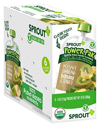 Sprout Power Pak Organic Baby Food Pouches, Organic Toddler Food Puree, Kiwi with Superblend Banana & Spinach, 4 Ounce, 6 Count