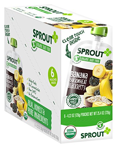 Sprout Organic Baby Food Pouches, Stage 2 Sprout Baby Food, Banana Buckwheat Blackberry, 4 Ounce, 10 Count