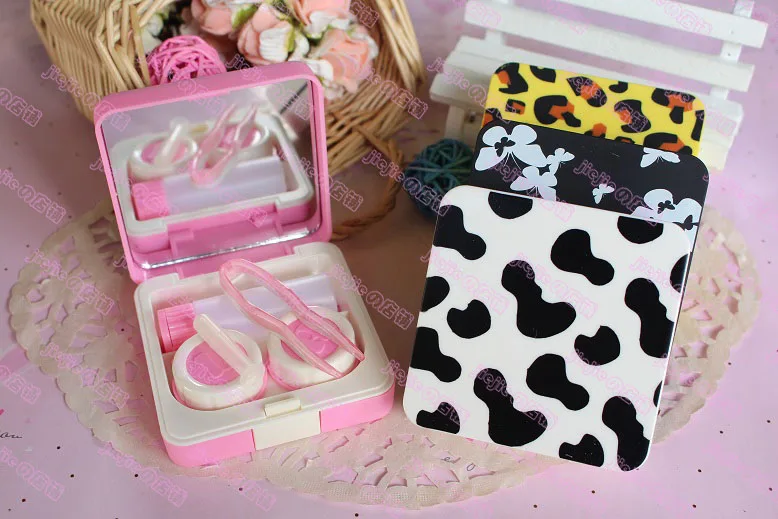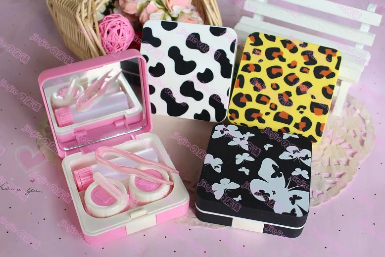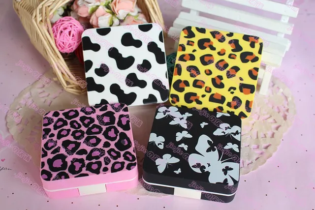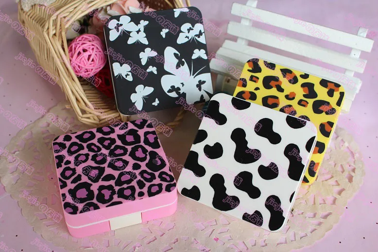 4 개 귀여운 콘택트 렌즈 상자 파트너 눈 눈 패션 새로운 패턴 표범 프린트 7*7*2.3 센치메터
