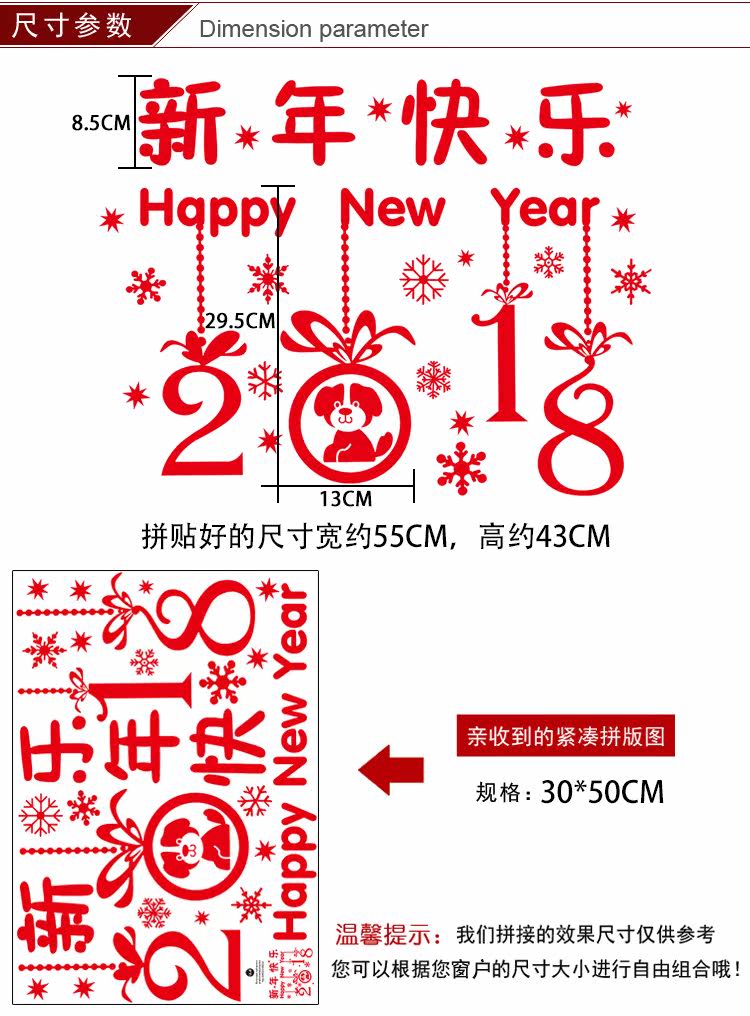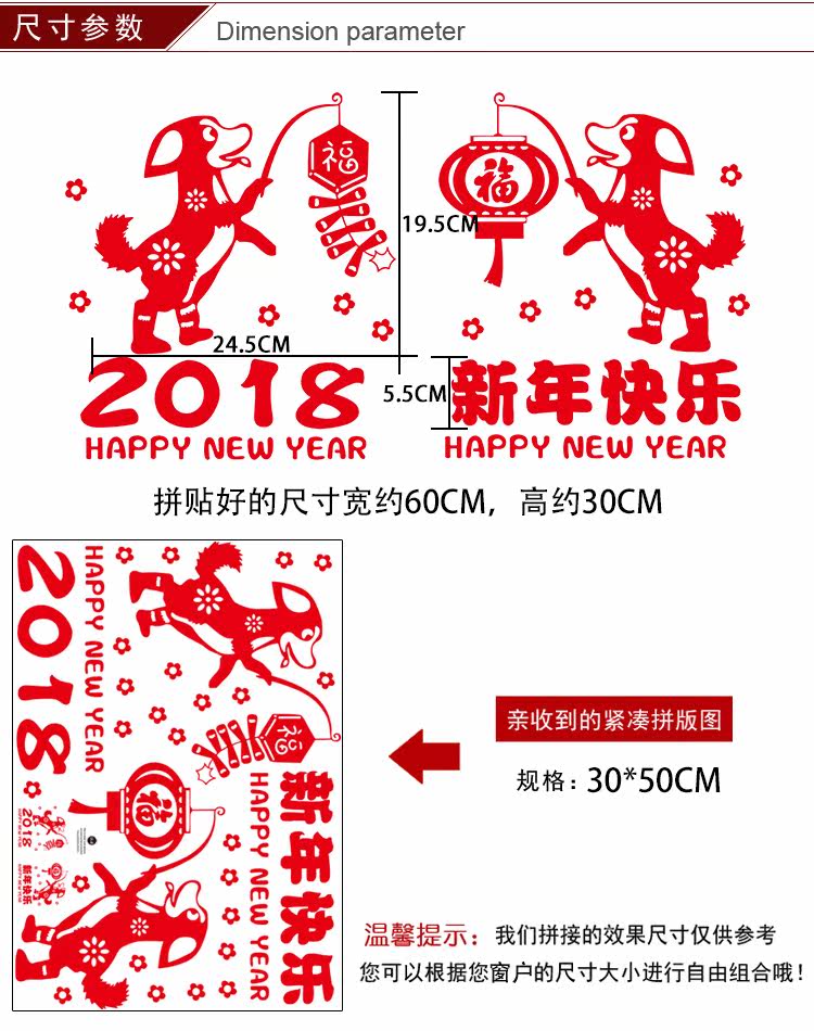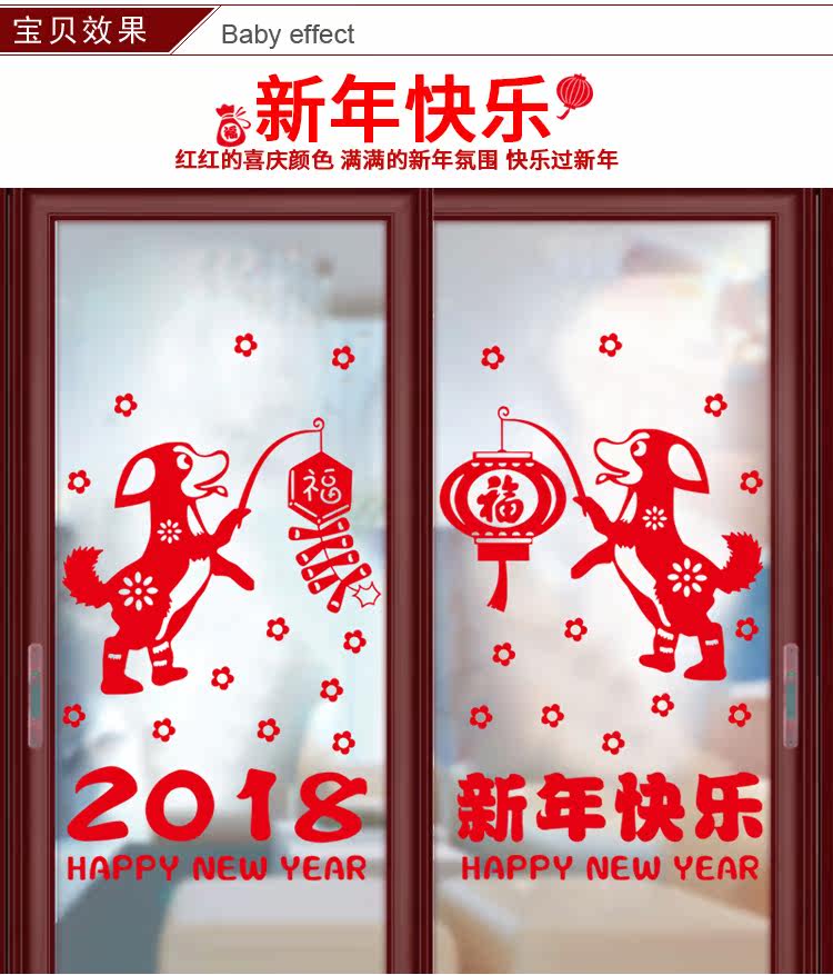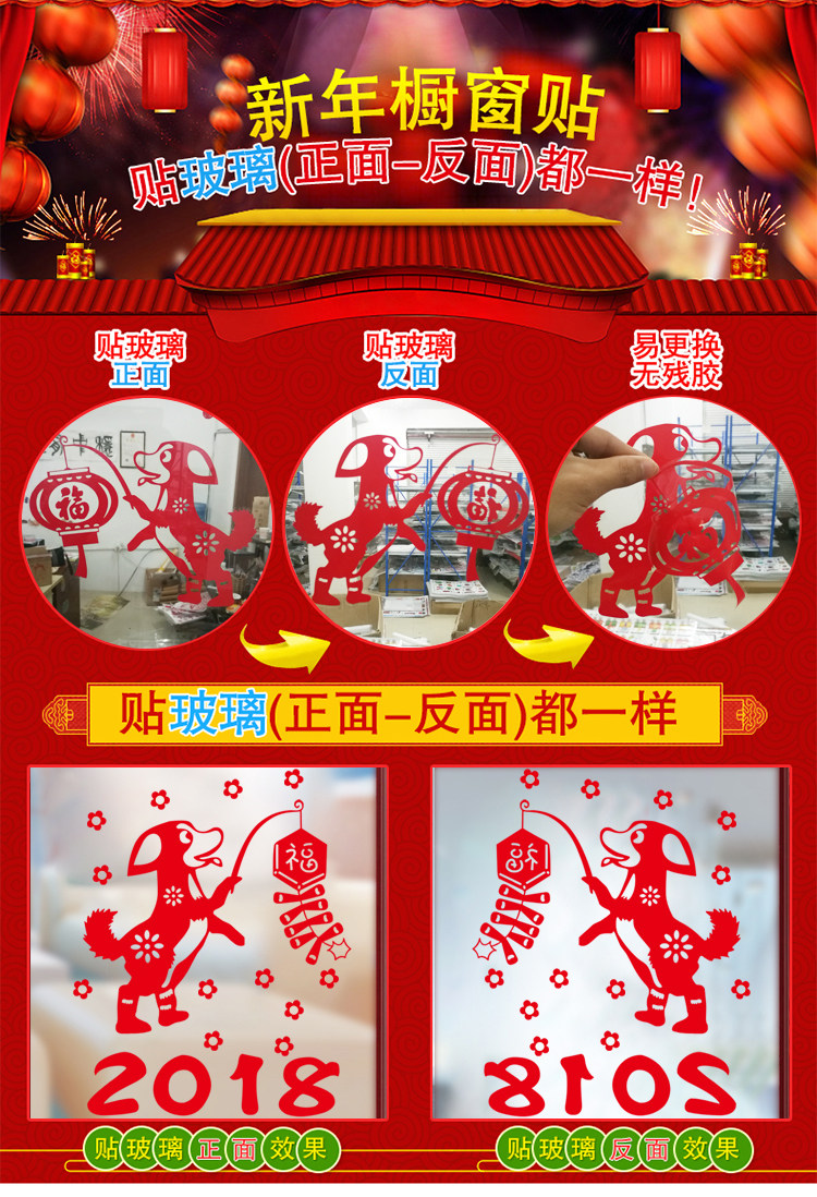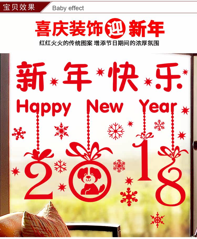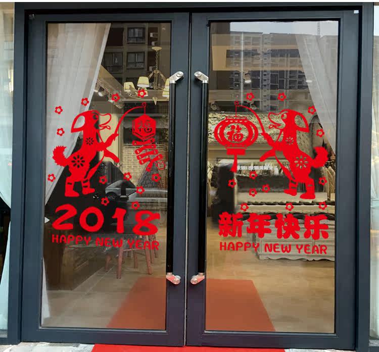 新年春节装饰品窗户门贴花店铺商场橱窗玻璃过年喜庆静电贴纸
