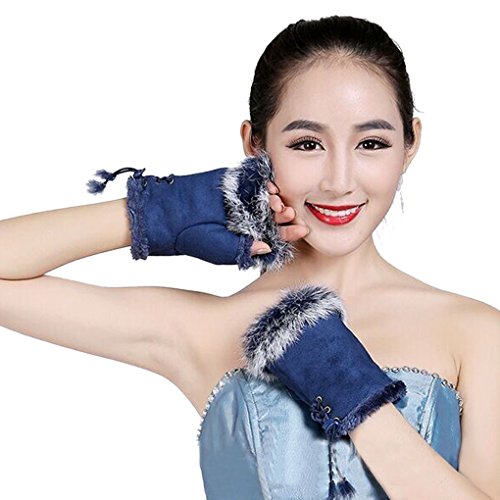 ? Material:??Rabbit Fur Suede ?Size: One Size,6.3'x 4'/16 x 10cm(L*W) ?Weight:63G ?Suit for: Womens Ladies Girls ?Picture:classical solid color design ?Type: Half Finger ?Style: Warm Fashion ?Color:Black,wine-red,Blue,Purple,Coffee ?Package Includes: 1 pair of warm gloves